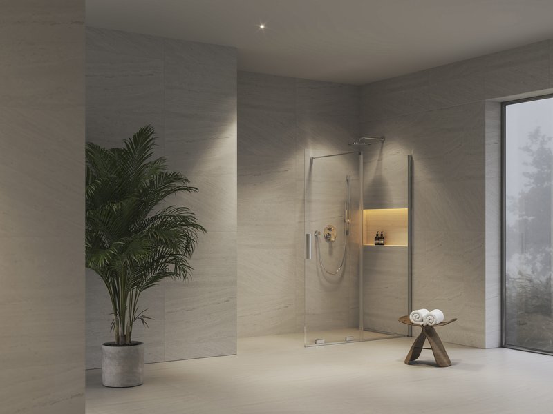 Die Duschfamilie Roll umfasst unter anderem die beliebte Walk-in-Variante. Der verschiebbare Teil kann die meiste Zeit eingefahren bleiben, sodass er nicht in den Raum hinausragt und das Badezimmer luftiger wirkt. Beim Duschen einfach herausschieben und schon hat man eine breite, funktionale Duschwand.