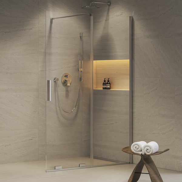 Das dezente, rahmenlose Design lässt den gesamten Raum optisch leichter wirken. Das praktische Schiebesystem ist platzsparend und gewährleistet eine komfortable Nutzung auch in kleineren Badezimmern. Der sanfte Lauf des robusten 8-mm-Glases und die präzise verarbeiteten Details sorgen für eine entspannte Benutzung über lange Zeit.
