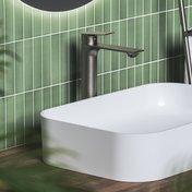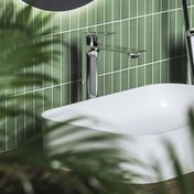 Die extra verlängerte Einlocharmatur passt perfekt zu Aufsatzwaschbecken. Die Kollektion Plan bringt eleganten Minimalismus, inspiriert von moderner Geometrie. Der schlanke zylindrische Körper und der horizontale, scharf geschnittene Auslauf schaffen ein klares und ausgewogenes Erscheinungsbild. Die Einhebelbedienung greift die Form des Auslaufs auf und bildet so eine perfekt symmetrische Silhouette. Das Produkt ist in den Farben Chrom, Schwarz matt und Graphit gebürstet erhältlich.