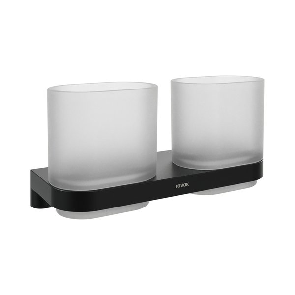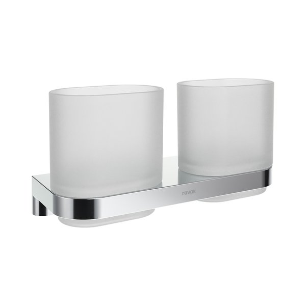 Der Halter mit zwei Bechern wird mit zwei Dübeln und einer Einstellklemmplatte aus Metall montiert. Der Schraubenabstand beträgt 66 mm. Das Montageset ist im Lieferumfang enthalten. Der Halter ist auf der Innenseite mit einem Kunststoffring versehen, der einen weichen Sitz des Glasgefäßes gewährleistet. Für eine einheitliche Lösung und ein harmonisches Badezimmerdesign empfehlen wir, es mit anderen Chrome II-Accessoires zu kombinieren. Für die äußerliche Reinigung empfehlen wir die Verwendung des Reinigungsmittels RAVAK Cleaner Chrome.