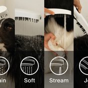 Die vordere Druckdüse, die über eine separate Taste auf der Rückseite bedient werden kann, entfernt effektiv hartnäckigen Schmutz wie z. B. eingetrockneten Schlamm. Die Brausenbürste ist flexibel genug, um das Fell sanft zu entwirren, das Shampoo aufzuschäumen und Verunreinigungen besser zu entfernen. Gleichzeitig sorgt sie für eine wohltuende Massage. Die Brause für Haustiere kann einfach an einen herkömmlichen Brauseschlauch angeschlossen werden. Wählen Sie aus unserem Angebot in Schwarz, Weiß oder in der Farbe, die am besten zu Ihrem Badezimmer passt.