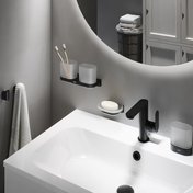 Der praktische Wandeinfachhaken im Design Chrome II ist ideal zum Aufhängen von Handtüchern, Kleidung, Bademänteln, des Haartrockners, etc. geeignet. Das Produkt ist in den Farben Chrome und Schwarz matt erhältlich.