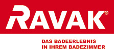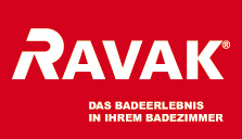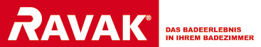 Farbkombinationen des Logos RAVAK: rot (C 10, M 100, Y 100, K 0; Pantone 186 C) und weiß (C0, M0, Y0, K0).