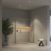 Das dezente, rahmenlose Design lässt den gesamten Raum optisch leichter wirken. Das praktische Schiebesystem ist platzsparend und gewährleistet eine komfortable Nutzung auch in kleineren Badezimmern. Der sanfte Lauf des robusten 8-mm-Glases und die präzise verarbeiteten Details sorgen für eine entspannte Benutzung über lange Zeit.